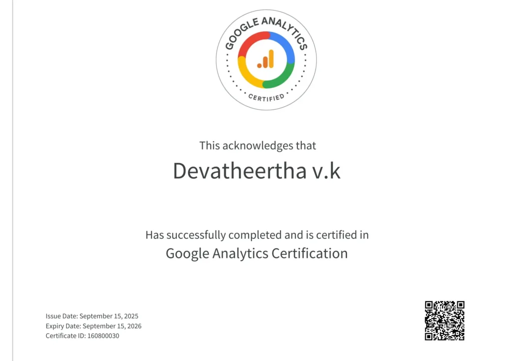 Hi, I’m Devatheertha. a passionate Freelance Digital Marketer dedicated to helping businesses grow their online presence. I specialize in creating result driven marketing strategies tailored to each client’s needs.